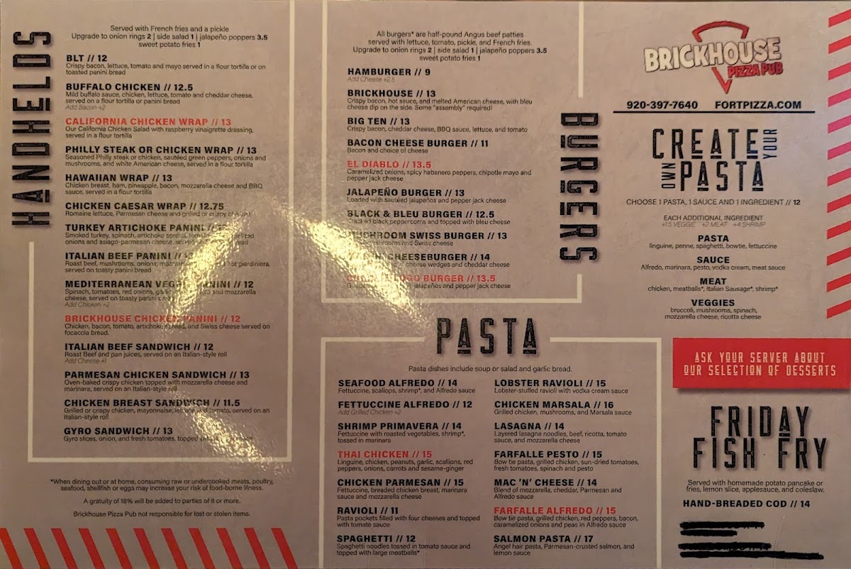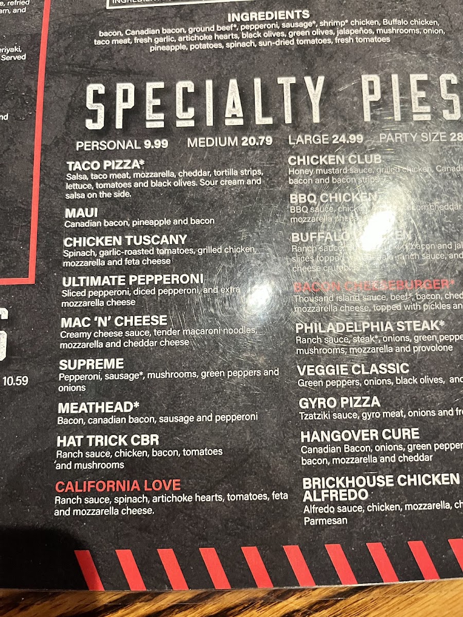 Brickhouse Pizza Pub Menu